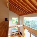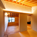 各々の部屋は個室として独立しているが、引き戸やガラス、梁上の抜けなどによって、 空間として区切られつつも意識的な繋がりが感じられるよう工夫した。その中で化粧垂木が連続する天井面は、意識と意匠の繋がりを象徴するアクセントとなっている。